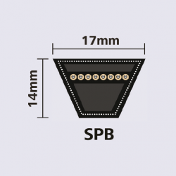 Correia Trapezoidal em V lisa SERIE ESTREITA de 16,3 mm x 13 mm ( L X A) secção “SPB”. O comprimento escrito neste tipo de correia varia de acordo com os fabricantes, pode ser o comprimento interno (Li), o comprimento de referência (Ld, Lp) ou o comprimento externo (La, Le).